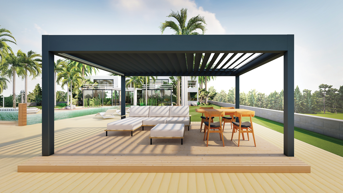 Ural Tornado 270 T enhances your outdoor spaces with its modern design and advanced engineering. The motorized aluminum louvered roof system allows you to control light and airflow at your convenience, while its 90° rotation and full closure features provide flexible use.